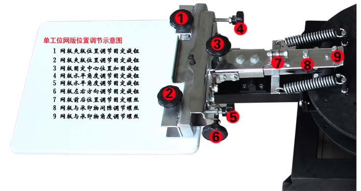 讑֤可同时加装四色网版,q有四个工位可四色同时印列网版与C双层轮{Q多色印刷、上料、下料同时进行印